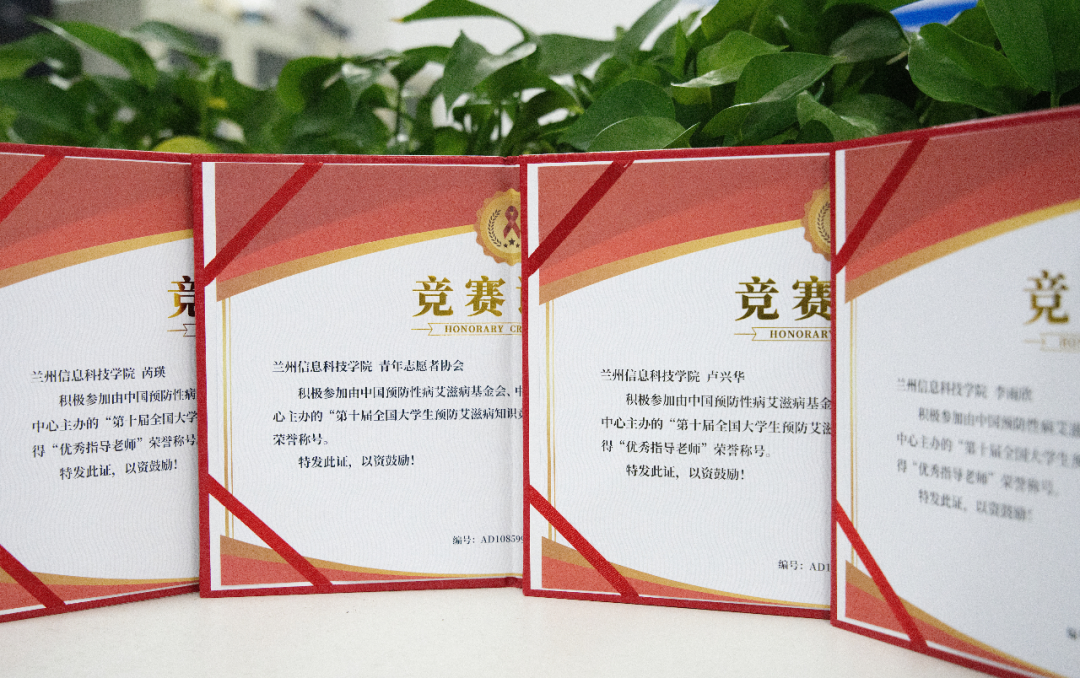 兰州信息科技学院青年志愿者协会凭借扎实的组织工作与突出的参与成效,荣获“优秀组织单位”,卢兴华、李雨欣、芮瑛荣获优秀指导老师荣誉称号,此次大赛的获奖,彰显兰州信息科技学院在防艾宣传教育领域的积极成效。